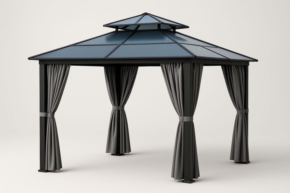 Komponenty: Konstrukcja z 4 słupami, dach, zestaw zasłon.