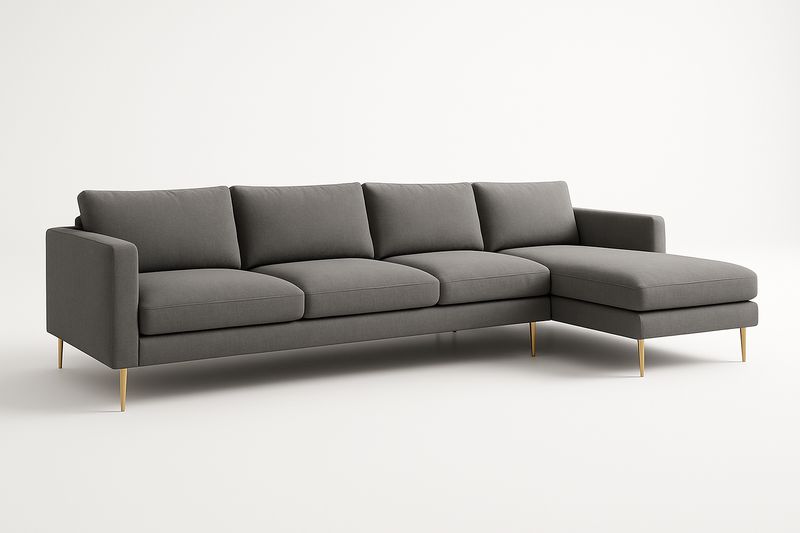 Materiał: 100% poliester, pianka poliuretanowa, drewno liściaste warstwowe i płyta MDF, stal węglowa malowana proszkowo w kolorze złotym